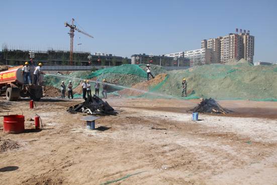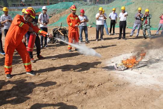 現(xiàn)場分別進(jìn)行了模擬電線著火、油料起火、墻面防護(hù)網(wǎng)起火、材料庫起火等火災(zāi)險(xiǎn)情,分別采用干粉滅火器、消防沙、混合水、蓋板覆蓋、自備消防車等滅火方式。針對不同火險(xiǎn)由專職安全員現(xiàn)場講解不同滅火器材的適用范圍、使用方法、操作要領(lǐng)、滅火部位。隨后現(xiàn)場進(jìn)行了各種模擬火險(xiǎn)的滅火演練。利用現(xiàn)場條件,總工程師王振福為大家詳細(xì)講解了灰土擠密樁施工工藝及設(shè)備介紹,公司員工根據(jù)現(xiàn)場施工條件詳細(xì)了解了基礎(chǔ)施工工藝及現(xiàn)場管理,開闊了大家的眼界,增長了見識,學(xué)習(xí)了施工管理經(jīng)驗(yàn)。